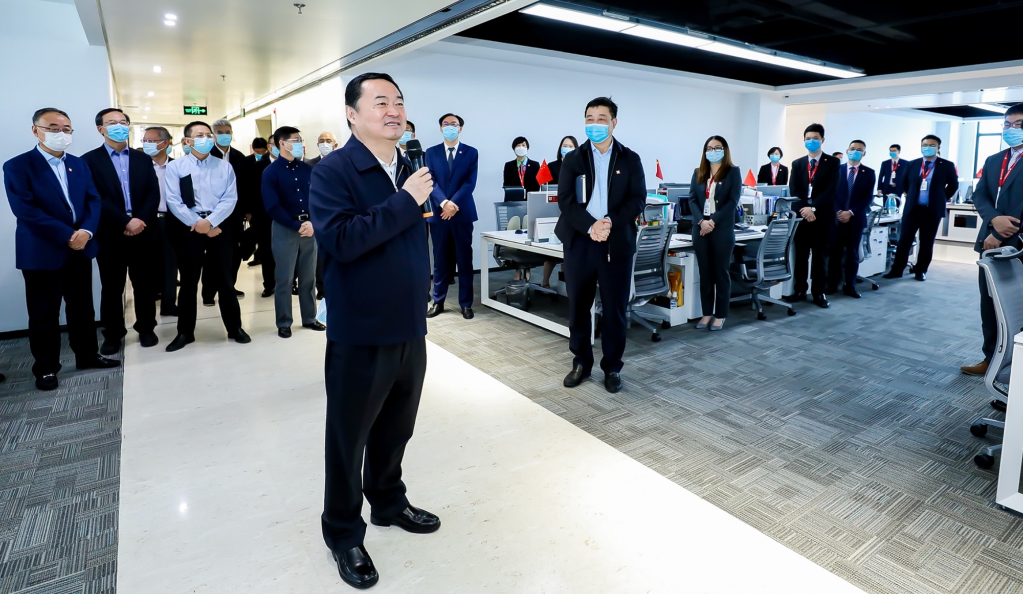 郝鵬通過企業(yè)展覽了解中國國新改革發(fā)展總體情況,隨后來到中國國新基金管理有限公司詳細了解國風(fēng)投基金、央企運營基金、雙百基金等國新系基金運營情況,與企業(yè)干部職工親切交流,并與基金公司投資的孚能科技、中國黃金所屬河南中原黃金冶煉廠負責(zé)同志視頻連線,充分肯定企業(yè)廣大干部職工一手抓疫情防控、一手抓經(jīng)營發(fā)展取得的積極成效,表示國資委將進一步指導(dǎo)推動中國國新加大對實體經(jīng)濟、戰(zhàn)略性新興產(chǎn)業(yè)支持力度,助力實現(xiàn)關(guān)鍵核心技術(shù)自主可控、產(chǎn)業(yè)鏈供應(yīng)鏈安全穩(wěn)定。郝鵬指出,中國國新作為國有資本運營公司試點以來,積極服務(wù)國家戰(zhàn)略,堅持依法合規(guī)經(jīng)營、創(chuàng)新工作機制,在助力國有企業(yè)做強做優(yōu)等方面取得明顯成效,要進一步聚焦主責(zé)主業(yè),健全市場化經(jīng)營機制,堅決守住不發(fā)生重大風(fēng)險底線,努力打造高水平國有資本市場化運營專業(yè)平臺,為深入推進國有資本投資、運營公司改革提供更多有益的經(jīng)驗做法。