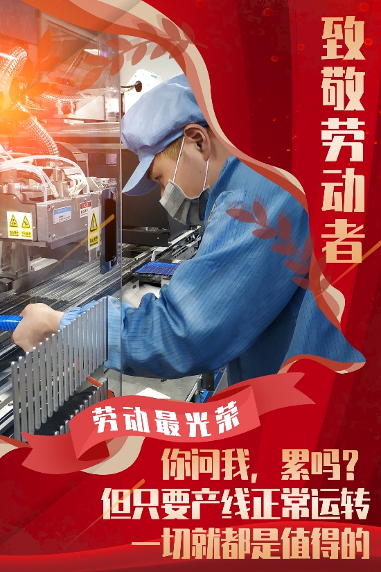 ? ? ? ? 勞動最光榮!勞動最偉大。向中節(jié)能太陽能鎮(zhèn)江公司全體職工致以節(jié)日祝賀和崇高的敬意!希望每一位伙伴繼續(xù)努力,干一行、愛一行,鉆一行、精一行,愛崗敬業(yè)、忠于職守,在平凡崗位上做出不平凡的成績;要高標(biāo)準(zhǔn)、嚴(yán)要求地對待工作的每一個步驟、每一個環(huán)節(jié)、每一個細(xì)微之處,精益求精、力求完美。 ? ? ?“新時代是奮斗者的時代”。讓我們腳踏實(shí)地,主動擔(dān)當(dāng),共同落實(shí)好疫情防控、復(fù)工復(fù)產(chǎn)以及生產(chǎn)經(jīng)營各項工作,為公司提質(zhì)增效、轉(zhuǎn)型升級貢獻(xiàn)自己的青春力量。 致敬每一個 為夢想步履不停的人!