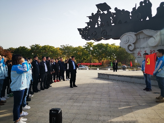 ? ? ? ?為扎實(shí)推進(jìn)“不忘初心、牢記使命”主題教育往深里走、往心里走,讓全體黨員學(xué)有成效,10月30日下午,鎮(zhèn)江公司黨總支組織開展“不忘初心、牢記使命”主題黨日活動,太陽能公司副總經(jīng)理、總工程師姜利凱以及鎮(zhèn)江公司領(lǐng)導(dǎo)班子、全體黨員、入黨積極分子共計(jì)50余人參加。 接受紅色教育 ? ? ? ?全體黨員首先集體參觀鎮(zhèn)江市揚(yáng)中紅色教育基地——渡江戰(zhàn)役紀(jì)念館,接受紅色文化教育,重溫渡江戰(zhàn)役歷史,緬懷革命先烈的豐功偉績,感悟紅色經(jīng)典的時代內(nèi)涵,進(jìn)而增強(qiáng)黨員干部全面從嚴(yán)治黨的自覺性和堅(jiān)定性。