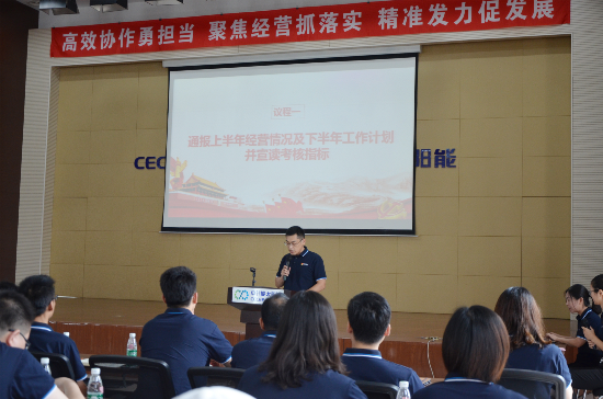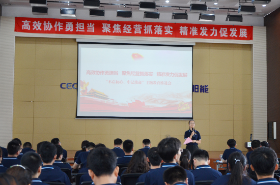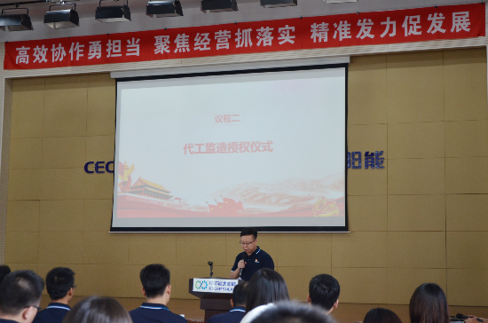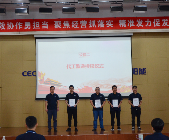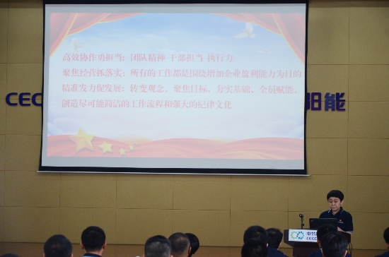 ? ? ? ? 不忘初心,方得始終。在中節(jié)能太陽(yáng)能科技(鎮(zhèn)江)有限公司(以下簡(jiǎn)稱(chēng)“鎮(zhèn)江公司”)成立九周年之際,為扎實(shí)推進(jìn)“不忘初心、牢記使命”主題教育深入開(kāi)展,進(jìn)一步凝心聚力,明確共識(shí),8月26日上午,鎮(zhèn)江公司組織召開(kāi)“不忘初心、牢記使命”主題教育推進(jìn)會(huì)。 ? ? ? ?本次大會(huì)以“高效協(xié)作勇?lián)?dāng)、聚焦經(jīng)營(yíng)抓落實(shí)、精準(zhǔn)發(fā)力促發(fā)展”為主題,結(jié)合“不忘初心、牢記使命”主題教育“十二字”總要求,重在找準(zhǔn)差距、抓好落實(shí),使全體干部職工煥發(fā)出攻堅(jiān)克難、高效協(xié)作、擔(dān)當(dāng)作為的工作熱情,將主題教育成效轉(zhuǎn)化為推動(dòng)公司改革發(fā)展的強(qiáng)大動(dòng)力。參加會(huì)議的有鎮(zhèn)江公司領(lǐng)導(dǎo)班子、組長(zhǎng)及以上管理人員、全體黨員、代工監(jiān)造團(tuán)隊(duì)代表以及2010年入職的老員工等130余人。 聚焦經(jīng)營(yíng),真抓實(shí)干 ? ? ? ? 會(huì)議開(kāi)始,鎮(zhèn)江公司副總經(jīng)理、總會(huì)計(jì)師肖宏浩通報(bào)公司上半年經(jīng)營(yíng)情況及下半年重點(diǎn)工作計(jì)劃,并對(duì)各部門(mén)考核指標(biāo)進(jìn)行講解與宣讀。 ? ? ? ?2019年是鎮(zhèn)江公司二次創(chuàng)業(yè)的關(guān)鍵之年,公司堅(jiān)持“保穩(wěn)定、減虧損、改技術(shù)、收賬款”的工作定位,上半年取得一些成績(jī),但還面臨許多困難。下半年,公司重點(diǎn)工作計(jì)劃將圍繞降成本、創(chuàng)效益展開(kāi),各部門(mén)要結(jié)合目標(biāo)責(zé)任,高效協(xié)作,加強(qiáng)基礎(chǔ),真抓實(shí)干,賦予能量,力保企業(yè)全年經(jīng)營(yíng)目標(biāo)完成。 牢記使命,擔(dān)當(dāng)作為 ? ? ? ?外協(xié)代工是確保鎮(zhèn)江公司經(jīng)營(yíng)指標(biāo)完成的重要一環(huán)。本次推進(jìn)會(huì)舉行代工監(jiān)造授權(quán)啟動(dòng)儀式,鎮(zhèn)江公司副總經(jīng)理黃國(guó)平全面介紹代工監(jiān)造情況,強(qiáng)調(diào)公司授權(quán),并結(jié)合質(zhì)量管控人員的“初心”與“使命”,進(jìn)一步明確代工監(jiān)造人員肩負(fù)的責(zé)任與擔(dān)當(dāng)。 ? ? ? ?儀式上,公司向代工監(jiān)造團(tuán)隊(duì)代表發(fā)放授權(quán)書(shū)及進(jìn)行授旗,監(jiān)造團(tuán)隊(duì)代表莊嚴(yán)承諾:珍惜公司賦予的權(quán)利,履行代工監(jiān)造義務(wù),勇于擔(dān)當(dāng),嚴(yán)守紀(jì)律紅線(xiàn),積極維護(hù)企業(yè)形象與利益。 嚴(yán)管厚愛(ài),團(tuán)隊(duì)賦能 ? ? ? ?向管理要效益,以管理促發(fā)展。會(huì)上,鎮(zhèn)江公司副總經(jīng)理吳少梅聚焦管理者根本,提出了“我是什么樣的產(chǎn)品”的思考,從嚴(yán)管就是厚愛(ài)、防火墻作用發(fā)揮、企業(yè)賦予員工的社會(huì)身份等方面進(jìn)行分享導(dǎo)入。 ? ? ? ?安監(jiān)廠(chǎng)務(wù)部錢(qián)璐、組件中心劉思劍首先從實(shí)際案例出發(fā),分享了安全管理的嚴(yán)與愛(ài)。安全無(wú)小事,安全也是一種愛(ài)。每一個(gè)員工都要將安全放在心頭,牢固樹(shù)立“我要安全”的理念,安全工作,健康生活。