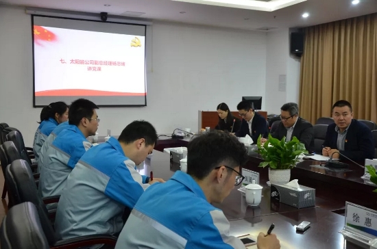 深入學(xué)習(xí)聽黨課 本次組織生活會(huì)上,太陽能公司副總經(jīng)理?xiàng)钪揖w以“新思想引領(lǐng)新時(shí)代?新征程激發(fā)新責(zé)任——深入學(xué)習(xí)貫徹習(xí)近平新時(shí)代中國特色社會(huì)主義思想”為主題給大家上了一堂專題黨課。