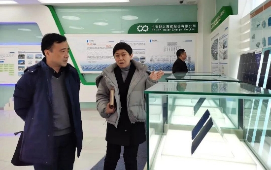 ????? 12月23日,鎮(zhèn)江市發(fā)展和改革委員會副主任孫嘉磊一行人員調(diào)研鎮(zhèn)江公司,就鎮(zhèn)江公司1.5GW高效太陽能組件項目落地進行重點幫辦。鎮(zhèn)江公司黨總支書記、董事長李菁楠等陪同調(diào)研。