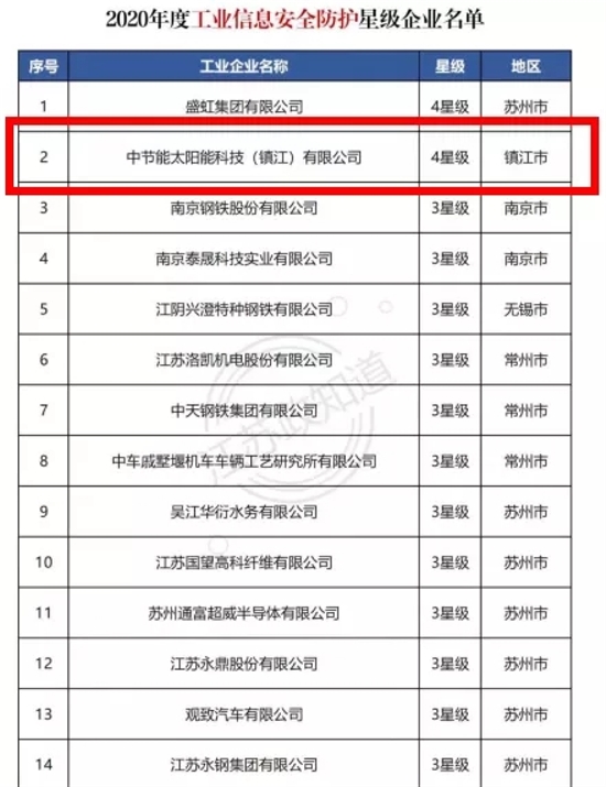 ? ? ? ?2021年1月25日,省工信廳公示2020年度工業(yè)信息安全防護(hù)星級(jí)企業(yè)名單。鎮(zhèn)江公司成為鎮(zhèn)江地區(qū)唯一一家獲得4星級(jí)工業(yè)信息安全防護(hù)認(rèn)證的企業(yè)!