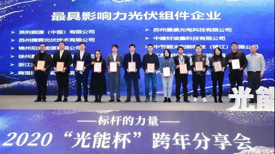 ? ? ? 2021年3月3日,第八屆“光能杯”跨年分享會于在江蘇蘇州成功舉辦。中節(jié)能太陽能科技(鎮(zhèn)江)有限公司(以下簡稱中節(jié)能太陽能鎮(zhèn)江公司)受邀出席并榮獲“最具影響力光伏組件企業(yè)”,鑒衡、索比聯(lián)合頒發(fā)的組件評測大獎“值得信賴組件企業(yè)”2個獎項。