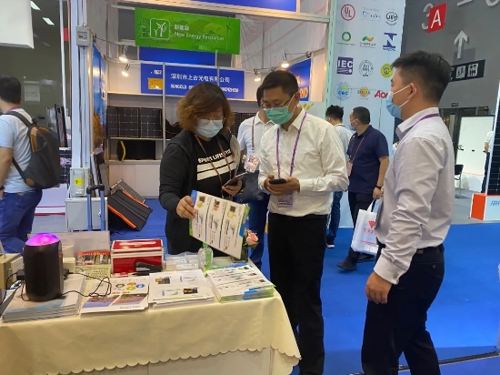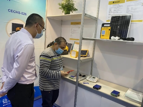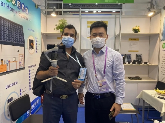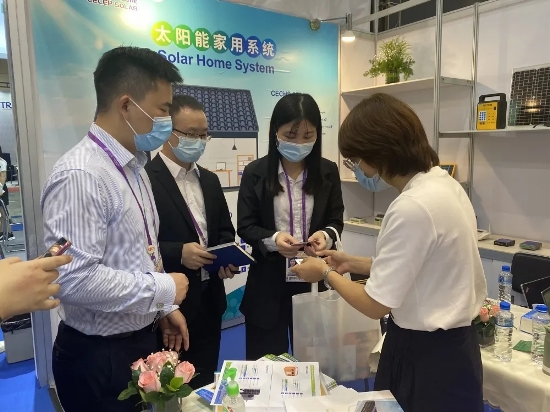 ? ? 太陽能家用離網(wǎng)系統(tǒng)于2021年8月完成全部測(cè)試,通過點(diǎn)亮全球“Lighting Global”權(quán)威認(rèn)證。它是一款便攜式新能源產(chǎn)品,產(chǎn)品集太陽能充電,市電充電于一體<采用先進(jìn)的數(shù)字化充放電電路設(shè)計(jì),外配高效的太陽能電池板,內(nèi)置超長(zhǎng)壽命的鋰電池,具有性能穩(wěn)定、供電保障率高、安全可即付即用、操作簡(jiǎn)單等特點(diǎn)??蓮V泛應(yīng)用于無電區(qū)域、家用應(yīng)急和車載戶外露營(yíng)等,可為移動(dòng)電話、應(yīng)急照明、直流風(fēng)扇、直流冰箱、直流電視、筆記本電腦、攝影設(shè)備、便攜式小家電等通訊設(shè)備及電子產(chǎn)品供電,滿足生活?yuàn)蕵匪琛?/p> ? ? 深化合作,積極推動(dòng)市場(chǎng)拓展 ? ? 在嚴(yán)格落實(shí)疫情防控要求的同時(shí),鎮(zhèn)江公司展位累積接待客戶300多人次,法國(guó)、意大利、葡萄牙、敘利亞、阿富汗、也門、巴西......世界各地, 五湖四海的采購商、同行人士來到展位參觀。鎮(zhèn)江公司積極落實(shí)集團(tuán)公司“市場(chǎng)拓展年”要求,持續(xù)跟進(jìn)客戶50多家,深入洽談客戶11家。