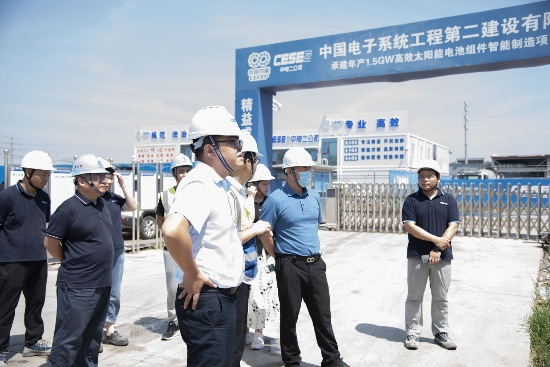 ? ? ? 楊忠緒一行首先聽取了鎮(zhèn)江公司2022年上半年安健環(huán)工作及1.5GW高效太陽能電池組件智能制造項(xiàng)目進(jìn)度專題匯報(bào),詳細(xì)了解了企業(yè)半年績效評定、職業(yè)衛(wèi)生、清潔生產(chǎn)與能耗管理等方面工作開展情況,并冒著高溫酷暑,深入1.5GW在建項(xiàng)目工地現(xiàn)場,實(shí)地調(diào)研了解項(xiàng)目土建進(jìn)度、機(jī)電進(jìn)度和裝修進(jìn)度等。