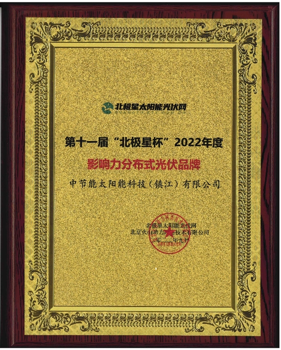 載譽(yù)而歸!中節(jié)能太陽能鎮(zhèn)江公司榮膺第十一屆“北極星杯”2022年度光伏/電池組件供應(yīng)商、分布式光伏企業(yè)影響力品牌 |