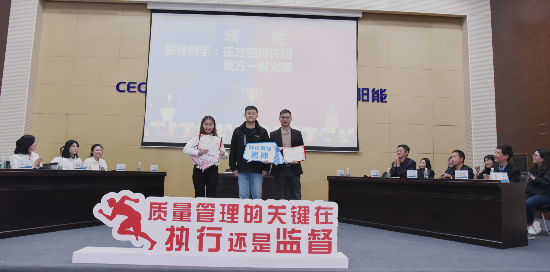 ? ? ? 鎮(zhèn)江公司副總經(jīng)理張佳偉、人力行政部部長張偉娟、信息部部長李寧、黨群文化部部長錢晶、經(jīng)營管理部主管楊華組成辯論賽的專家評審團(tuán),現(xiàn)場還有來自公司各部門代表組成的大眾評審團(tuán)以及熱情的觀眾。 ? ? ? 比賽伊始,雙方辯手幽默風(fēng)趣的團(tuán)隊(duì)風(fēng)采展示贏得了現(xiàn)場熱烈的掌聲。辯論過程中,雙方針鋒相對、互不相讓,為大家?guī)砹艘粓鲇欣碛袚?jù)的精彩辯論。正方“群英薈萃隊(duì)”以“擼起袖子加油干”“空談?wù)`國、實(shí)干興邦”為切入點(diǎn),突出執(zhí)行的重要性;而反方“節(jié)能辯霸隊(duì)”以海天醬油缺乏群眾的監(jiān)督失去消費(fèi)者的信任為案例強(qiáng)調(diào)監(jiān)督在質(zhì)量管理中更為重要。 ? ? ? ?從對方開篇立論到攻辯環(huán)節(jié)再到盤問、自由辯論環(huán)節(jié),都妙語連珠、金句頻出。雙方陳詞精辟犀利、滴水不漏,博得現(xiàn)場觀眾的陣陣掌聲,將比賽推向了一個又一個高潮。在總結(jié)陳詞環(huán)節(jié)中,雙方四辯針對對手邏輯上的漏洞逐一回?fù)?,思慮清晰。經(jīng)過現(xiàn)場評委及觀眾評定,最終由正方代表隊(duì)“群英薈萃隊(duì)”獲得本場辯論的勝利。電池中心質(zhì)量部許陽和組件中心技術(shù)部劉鵬獲得“最佳辯手”稱號。 ? ? ? ? 賽后,鎮(zhèn)江公司黨總支書記、董事長李菁楠指出,當(dāng)前,我們處在復(fù)雜多變的大環(huán)境下,唯一不變的就是變化,企業(yè)的發(fā)展需要不同的聲音。底氣源自實(shí)力,我們應(yīng)對光伏市場快速變化的唯一方法就是全力提升團(tuán)隊(duì)的核心競爭力,精準(zhǔn)發(fā)力,全力破除瓶頸制約。全體干部職工要通過學(xué)習(xí)和實(shí)踐升級自己,匯聚改革發(fā)展正能量,同時管理人員不僅要明辨是非、加強(qiáng)溝通,也要心懷夢想,勇往直前,要不斷發(fā)現(xiàn)問題,聚焦問題,解決問題,讓奮斗成為鎮(zhèn)江公司干部職工最亮的底色。 ? ? ? ? 學(xué)習(xí)二十大,決勝四季度。通過此次辯論賽,全體員工能夠積極思考生產(chǎn)質(zhì)量管理問題,提升學(xué)習(xí)能力,練就過硬本領(lǐng),把黨的二十大精神貫徹落實(shí)到工作當(dāng)中,不斷完善、優(yōu)化工作思路和行為實(shí)踐,促進(jìn)公司質(zhì)量工作全面提升,以更加過硬的作風(fēng)推動各項(xiàng)工作深入開展,以實(shí)際行動助力公司年度經(jīng)營目標(biāo)的的達(dá)成。