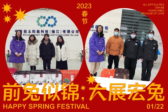? ? ? 歲寒情深暖意濃,殷殷關(guān)懷沁人心。為認(rèn)真貫徹落實(shí)太陽(yáng)能公司“陽(yáng)光送暖”年節(jié)慰問(wèn)工作的要求,1月22日大年初一,在舉家團(tuán)圓的新春佳節(jié),鎮(zhèn)江公司許多員工仍奉獻(xiàn)在生產(chǎn)一線。鎮(zhèn)江公司黨總支、工會(huì)、團(tuán)委深入基層一線,向節(jié)日期間離開家人堅(jiān)守崗位的員工,致以新春的祝福和美好的祝愿。