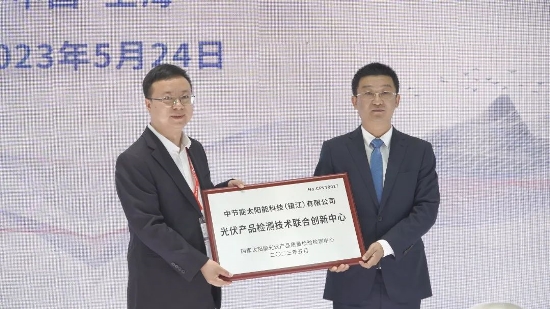 ? ? 會上還進行了授牌儀式,鑒于太陽能公司光伏產(chǎn)品在國家太陽能光伏產(chǎn)品質(zhì)量檢驗檢測中心(CPVT)銀川戶外實證基地安全、平穩(wěn)、高效運行五周年,CPVT向中節(jié)能太陽能科技(鎮(zhèn)江)有限公司授予“安全運行五周年”和“江蘇省市場監(jiān)管技術創(chuàng)新中心(太陽能光伏)”牌匾,并對企業(yè)專業(yè)度和產(chǎn)品的優(yōu)異性能表示充分肯定。交流中,CPVT和鎮(zhèn)江公司就后續(xù)雙方進一步深化合作達成共識。 ? ? 一路向陽、眾心向上、繼往開來、更上層樓。太陽能公司將始終踐行“提供優(yōu)質(zhì)產(chǎn)品,奉獻清潔能源,造福人類社會”的企業(yè)使命,專注于光伏電站、光伏制造兩大主營業(yè)務的發(fā)展,并通過新技術、高效能的信息化數(shù)字化建設,更好發(fā)揮央企數(shù)字化轉(zhuǎn)型的示范作用,持續(xù)為我國節(jié)能環(huán)保事業(yè)和清潔能源產(chǎn)業(yè)發(fā)展做出積極貢獻。 ?