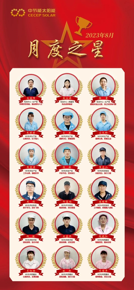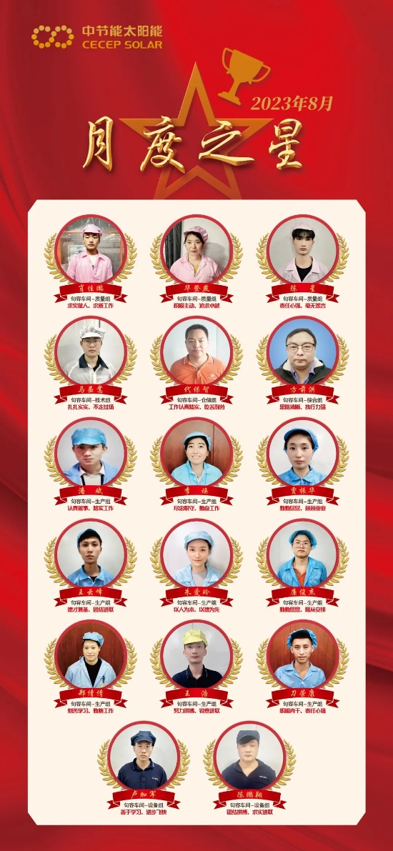 ??? 編者按: ??? 為全面貫徹落實黨的二十大精神,主動融入學習貫徹習近平新時代中國特色社會主義思想主題教育,引領全體員工積極投入到推進公司高質(zhì)量發(fā)展中,爭做“價值創(chuàng)造放大器”,鎮(zhèn)江公司開展“月度之星”評比活動,組織員工積極參與、認真評選。 ??? 在這期間,電池中心生產(chǎn)部馬俊峰、徐霞、質(zhì)量部殷玉娟,M3車間設備組印夏楠、周彤,句容車間生產(chǎn)組王云峰、潘斌等35人脫穎而出。他們工作積極,業(yè)績出眾,他們勤懇敬業(yè),能力突出,他們身上蘊藏著榜樣的力量,他們,就是月度之星。本期“榜樣就在身邊”專欄帶你走進8月份“月度之星”榮譽獲得者,熔鑄榜樣力量,學習榜樣精神,助力公司繼往開來、再上層樓。