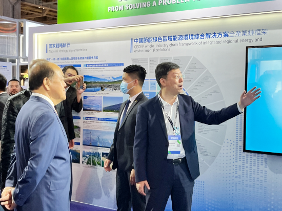 展會期間,澳門特首及特區(qū)政府司長、特派員、中聯(lián)辦領導一行,參觀澳門國際科技創(chuàng)新博覽會中國節(jié)能展位,在展臺現(xiàn)場與太陽能公司黨委副書記曹子君親切交流,共同探討清潔能源解決方案,賦能澳門綠色低碳產(chǎn)業(yè)發(fā)展。
