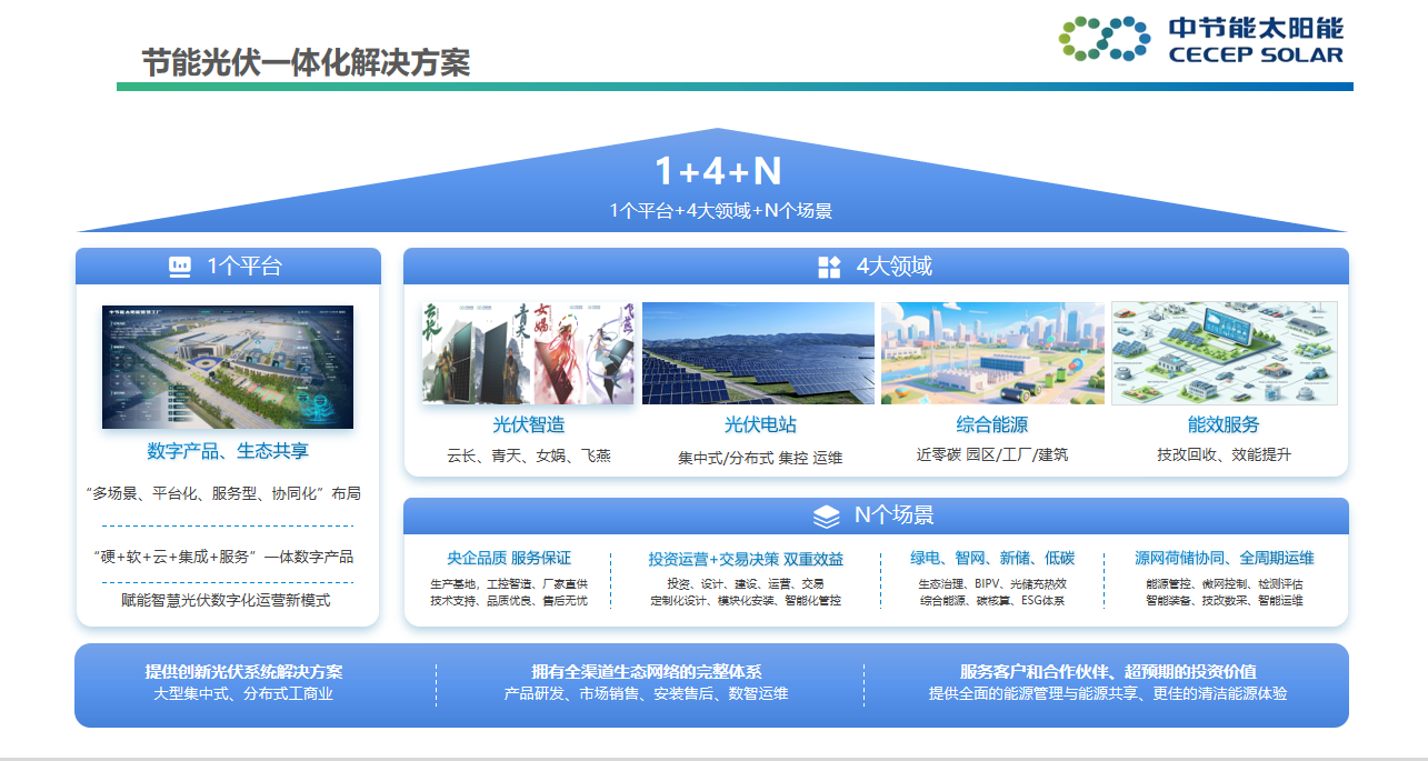 本著合作共贏,協(xié)同創(chuàng)新的理念,我們集合光伏產品、數(shù)字產品、光伏生態(tài)深入拓展戶用家庭、工商業(yè)、園區(qū)、農業(yè)、智慧能源等多元化應用場景,構建了數(shù)字化、全渠道的生態(tài)網絡。目前公司建成以產品研發(fā)、生產、銷售、服務和項目開發(fā)、設計、施工、運維為一體的完整體系,為用戶提供一站式的清潔能源解決方案。
