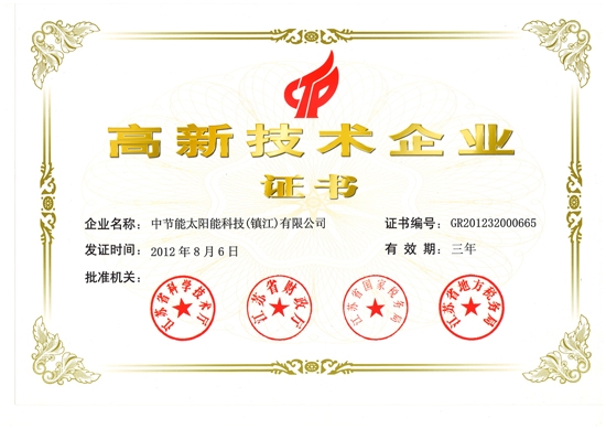 Jiangsu Province in 2012 to obtain high-tech enterprise certificate
