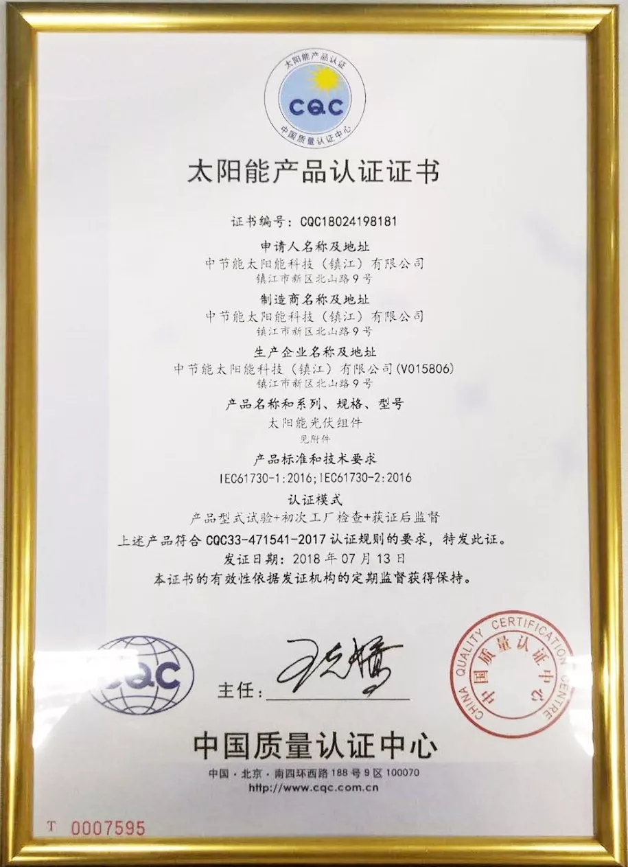 CECEP Solar Energy Technology (Zhenjiang) Co., Ltd. Is Selected into the First Batch of Enterprises Certificated by the New CQC Standards |