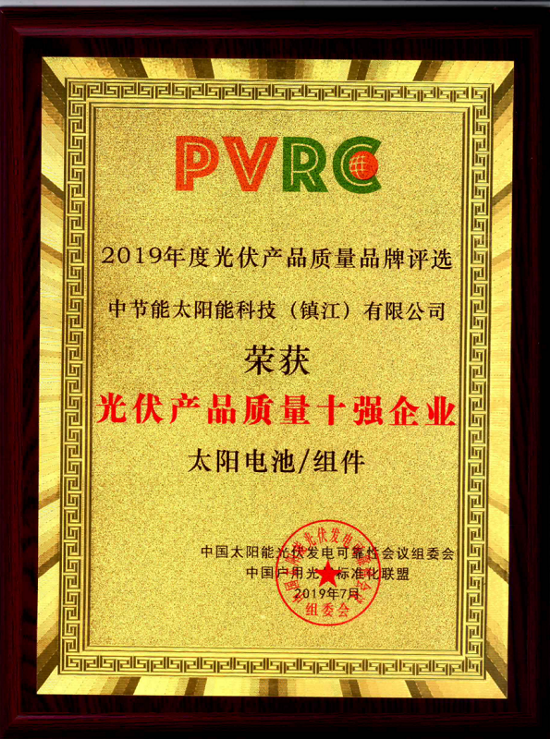 CECEP Solar Energy Technology (Zhenjiang) Co., Ltd. Is Granted the Honorary Title of “2019 Top 10 Enterprises in Photovoltaic Product Quality” |