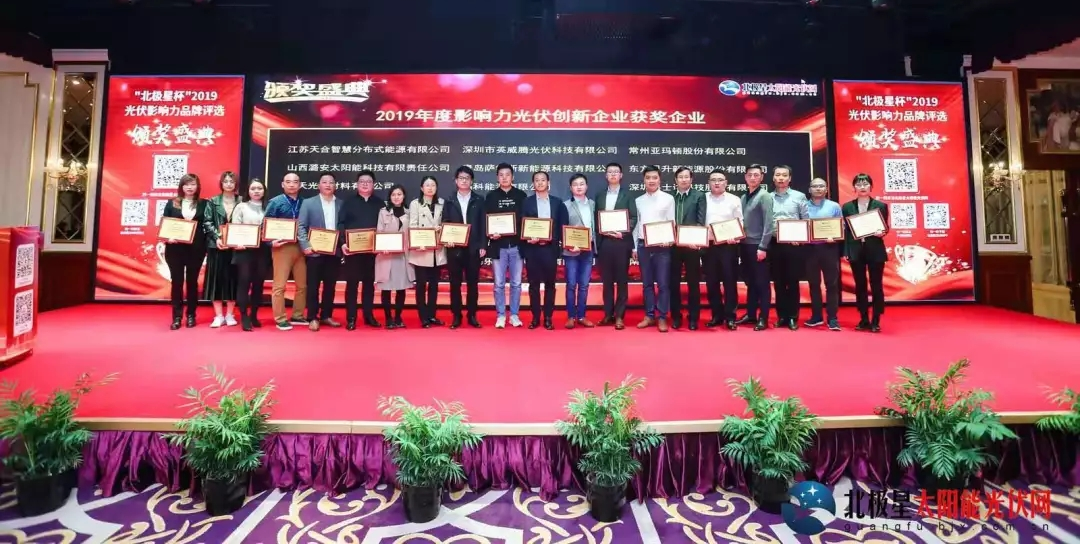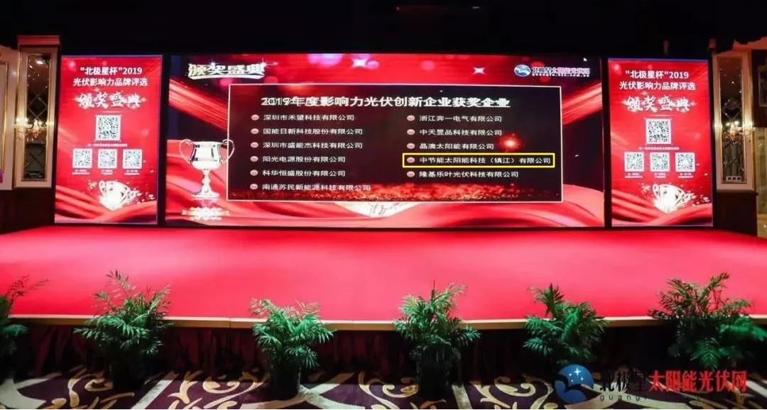 On October 24, 2019, the Award Ceremony of “North Star Cup”?2019 PV?Influential Brand Selection reached a complete success in Beijing. More than one hundred guests including relevant experts of the PV industry and representatives from outstanding enterprises engaging in all links along the PV industry chain gathered at this event to witness the glorious moments. CECEP Solar Energy Technology (Zhenjiang) Co., Ltd. (hereinafter referred to as “Zhenjiang Company”) was invited to attend as a sponsor, and won two awards of “2019 Annual Brand of Influential PV Cell/Module”?and “2019 Annual Innovative PV Enterprise of Influence”.
