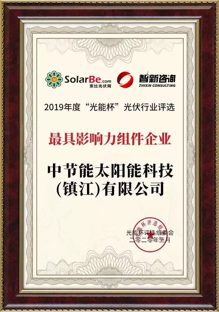 On the afternoon of March 31, 2020, the 2019 “Solar Energy Cup” Selection Activity & the first live award ceremony sponsored by SolarBe.com was successfully held, receiving close attention from the industry. CECEP Solar Energy Technology (Zhenjiang) Co., Ltd. (hereinafter referred to as “Zhenjiang?Company”) was honored as the “Most Influential Solar Panel Company 2019” by virtue of its outstanding brand influence, excellent performance of solar panel and high-quality services. This is another honor after Zhenjiang Company?has won the “‘Solar Energy Cup’ Annual Outstanding Solar Panel Company” for five consecutive years!