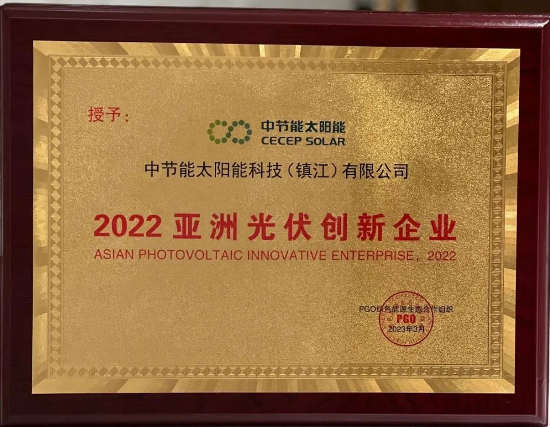 Good News! CECEP SOLAR Zhenjiang Wins 2022 AsiaSolar Innovation Enterprise Award |